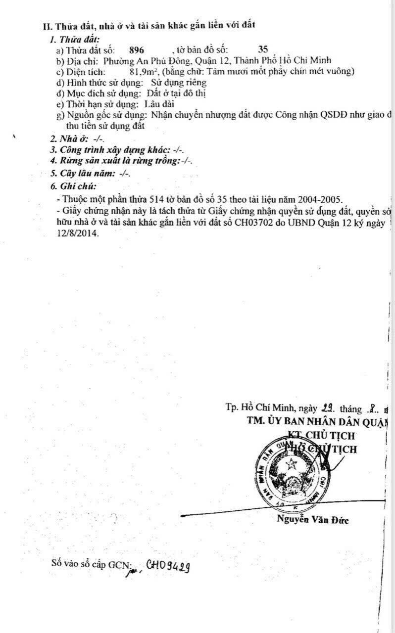 Địa chỉ tài sản: Đường An Phú Đông 13, phường An Phú Đông, tp. HCM