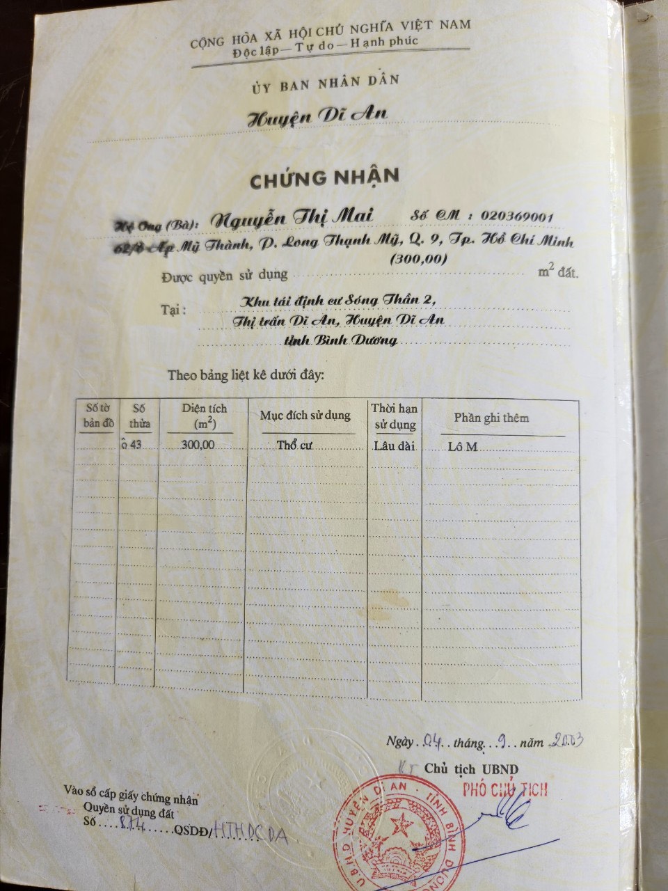 Địa chỉ tài sản: Dĩ An Bình Dương