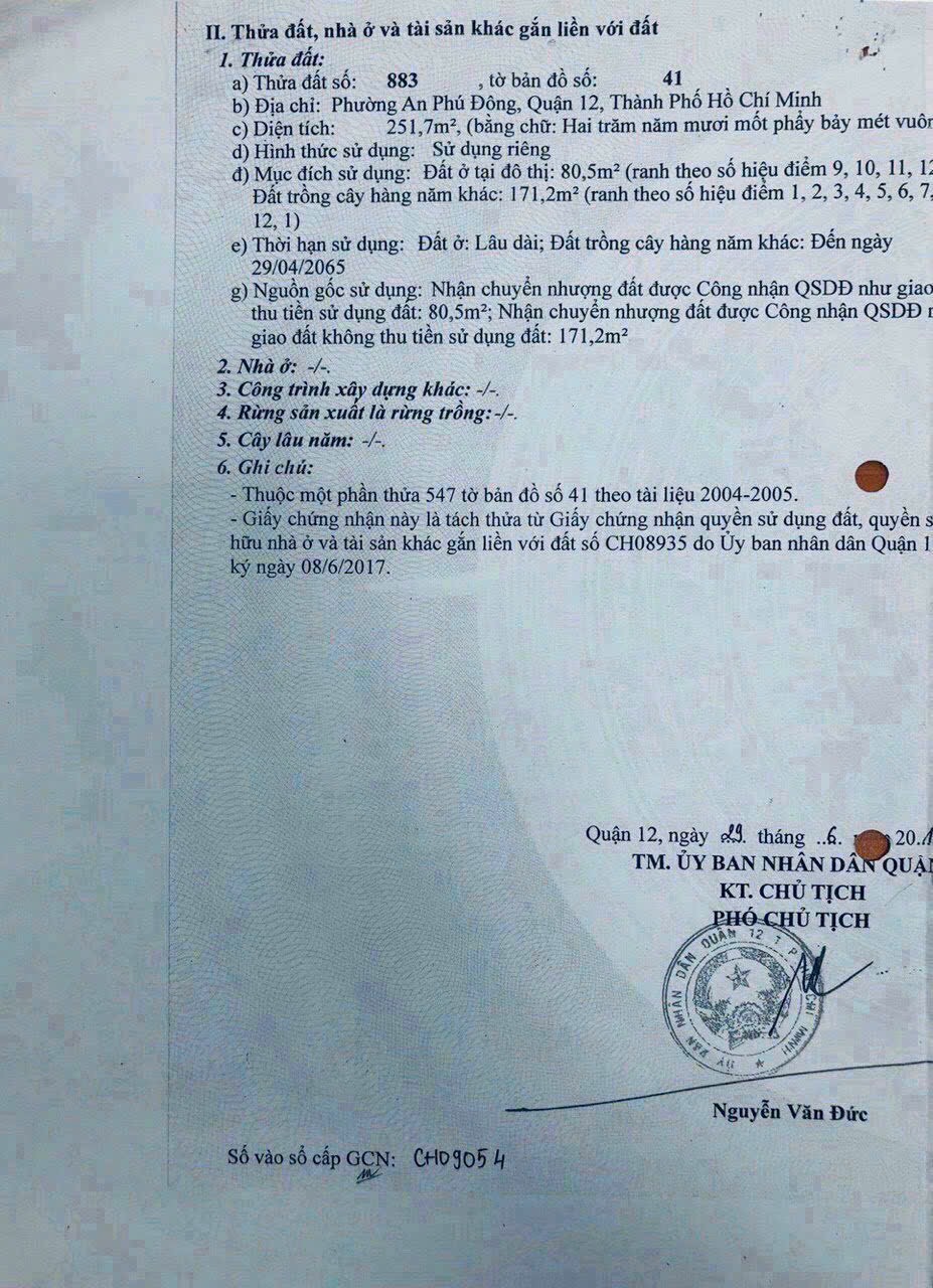 Địa chỉ tài sản: Hẻm 75 đường vườn lài phường An Phú Đông Q12