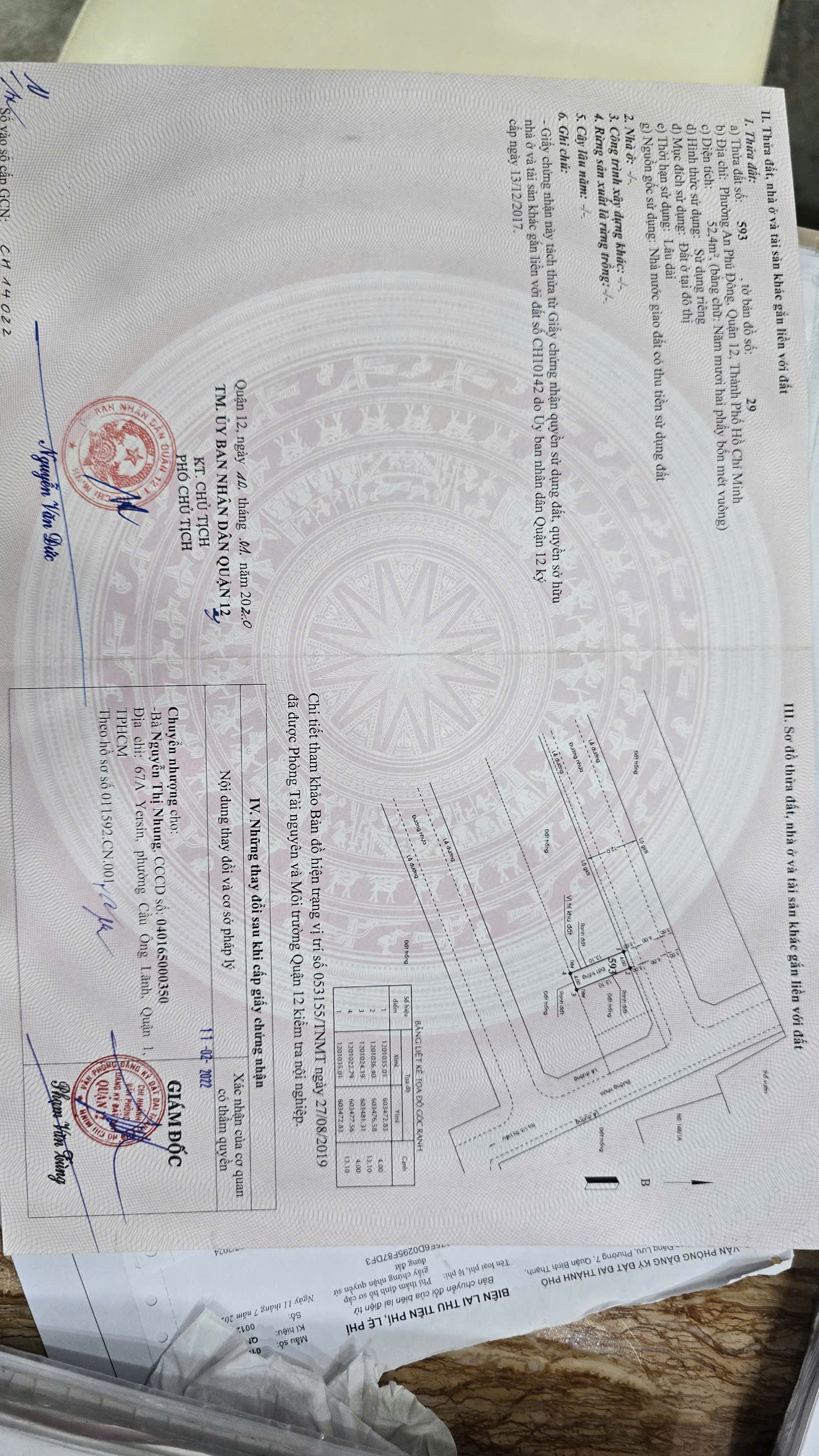 Địa chỉ tài sản: Đất khu phân lô Võ Thị Liễu, APĐ, quận 12.