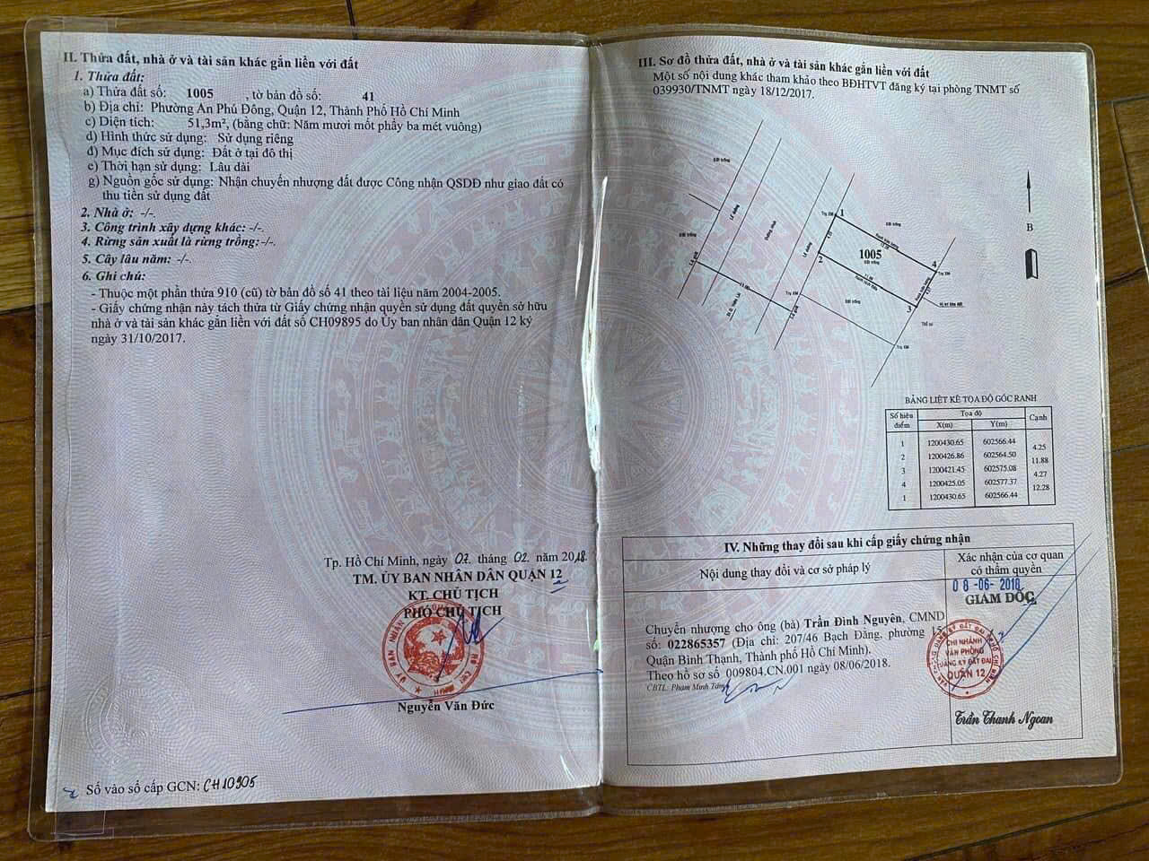 + DT: 4.25 x 12.28m = 51.3m2 Thổ cư. [Hậu: 4.27m].