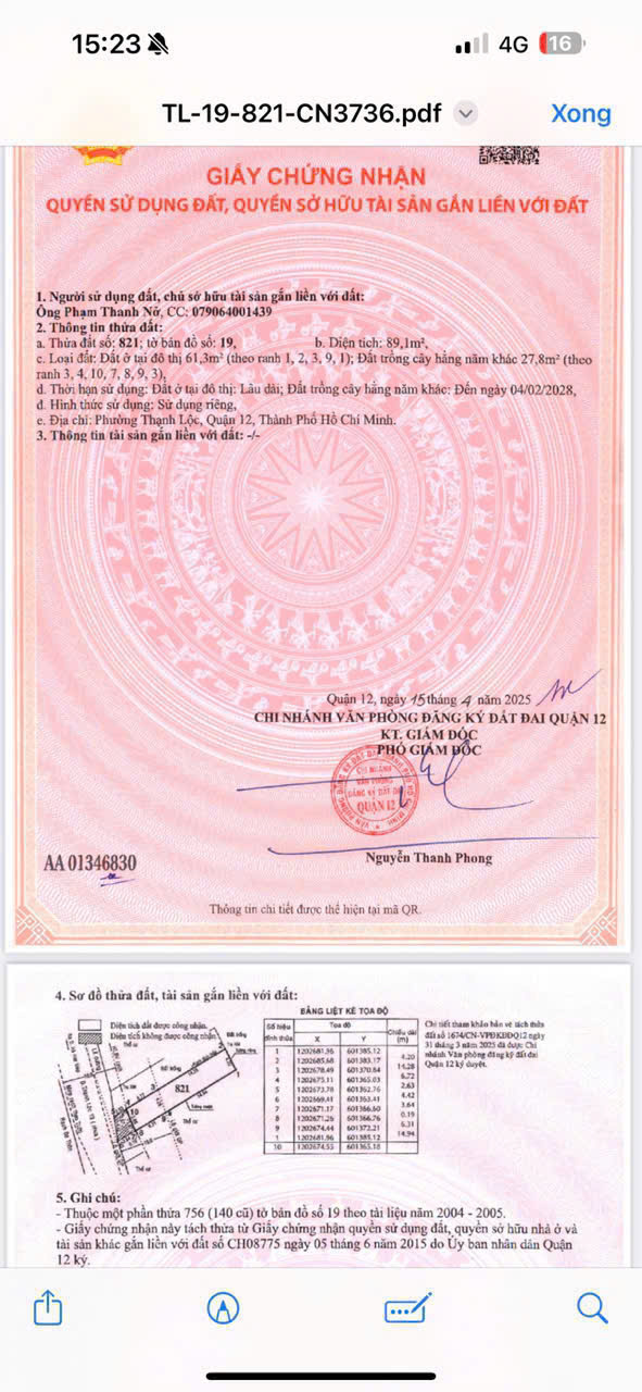 Địa chỉ tài sản: Đường TL 13, phường Thành Lộc HCM