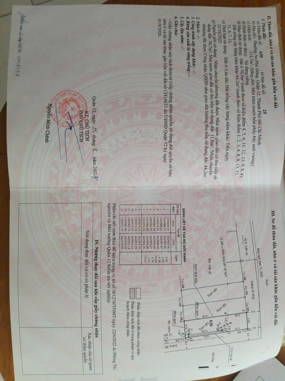 - Diện tích: 5.8 x 20 = 115 m² (thổ cư 70m2)